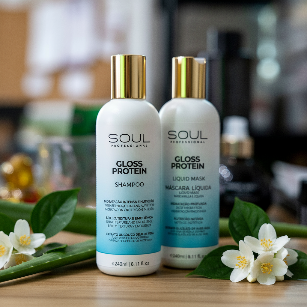 El CHAMPÚ PROTEÍNA BRILLO fue desarrollado para limpiar suavemente el cabello, especialmente el cabello que ha sido sometido a procesos químicos, promoviendo la hidratación y el brillo intenso.